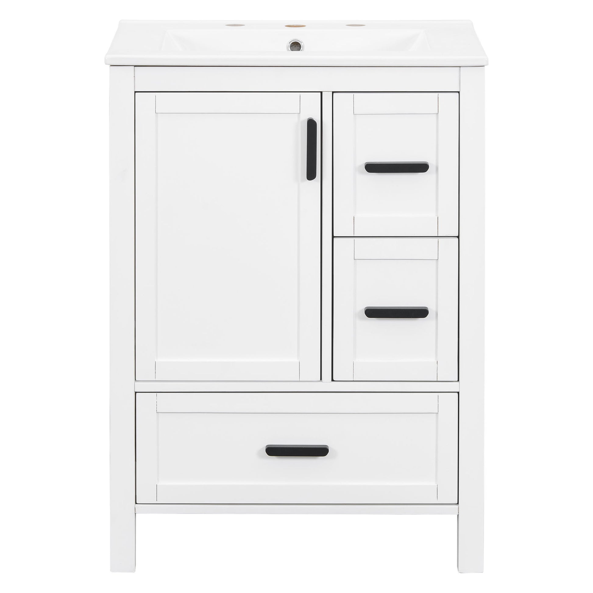 Bathroom Vanity With Sink, Sof Close Door, Double Layer Door Shelf And 3 Drawers - White