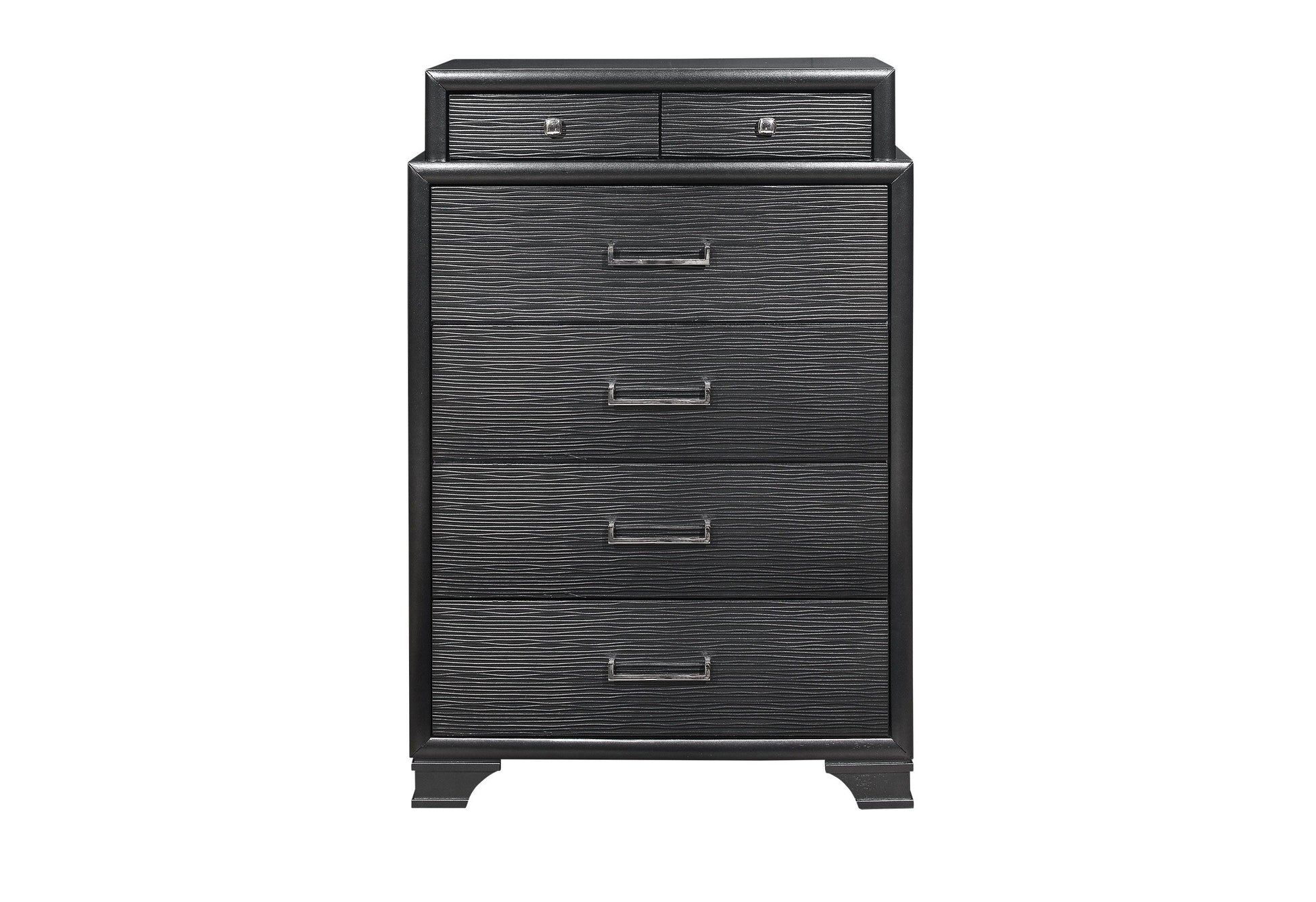 Introducing the Jordyn Bed Group from Global Furniture USA, the ultimate statement for any bedroom. The bed is designed with a platform design, eliminating the need for a box spring while adding room for storage drawers. The headboard features built-in lighting and two storage drawers for convenience. All case pieces are lacquer finished and feature nickel hardware. Upgrade your bedroom with the Jordyn Bed Group and enjoy its sleek and modern design for years to come.