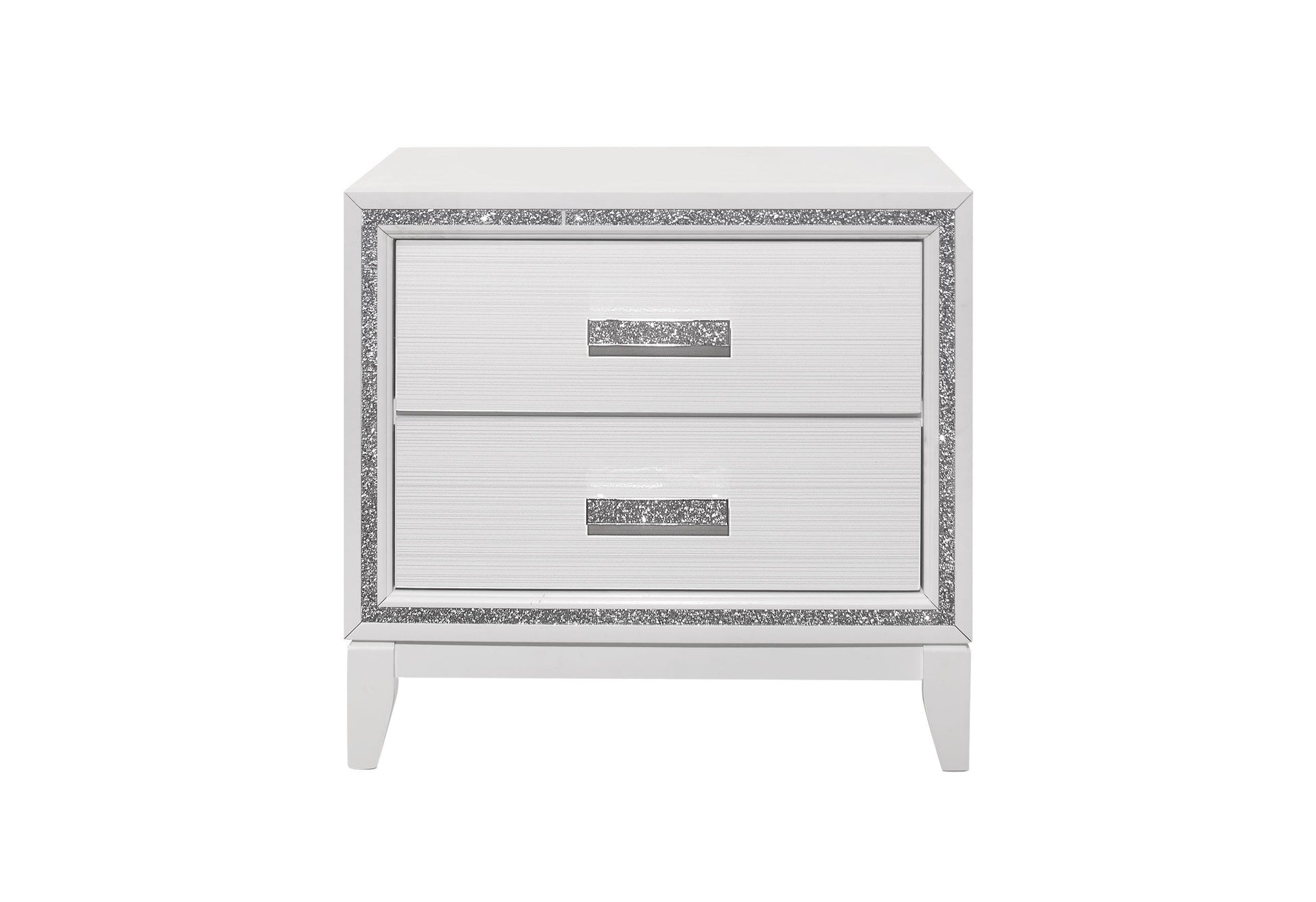 Lily bedroom brings two worlds together. The classic lines and modern accents create a beautiful transitional glam bedroom look. The crushed crystal like look outlines all the pieces along with LED lighting accenting the head board. The crushed crystal like design is not only used as an accent trim but is also carried over to the hardware. The end result is a beautiful glam bedroom.