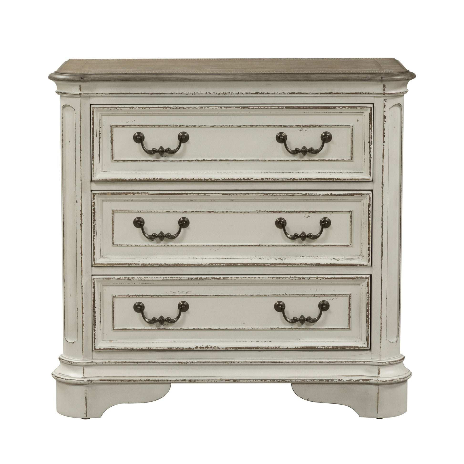 Magnolia Manor - 3 Drawer Bedside Chest With Charging Station - White