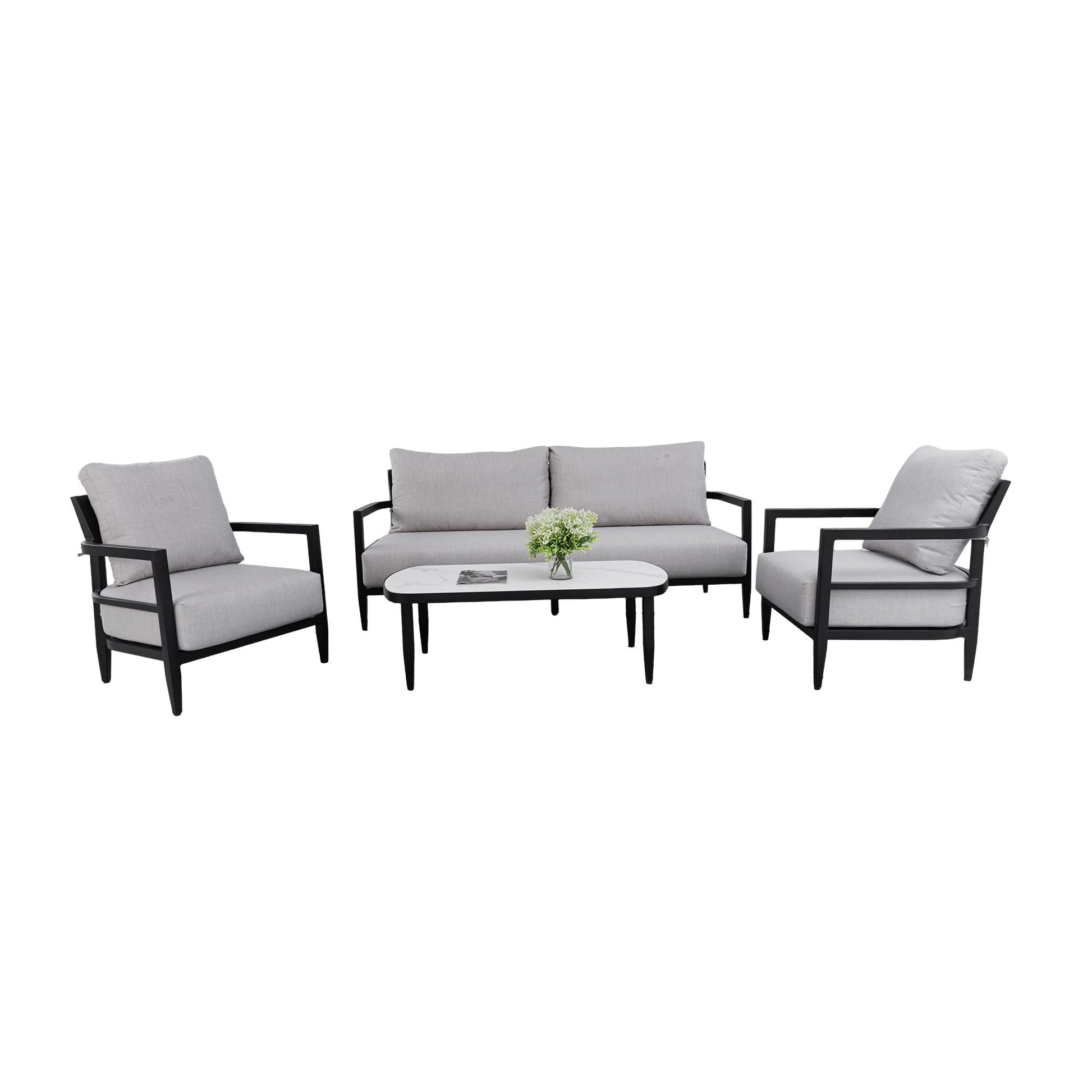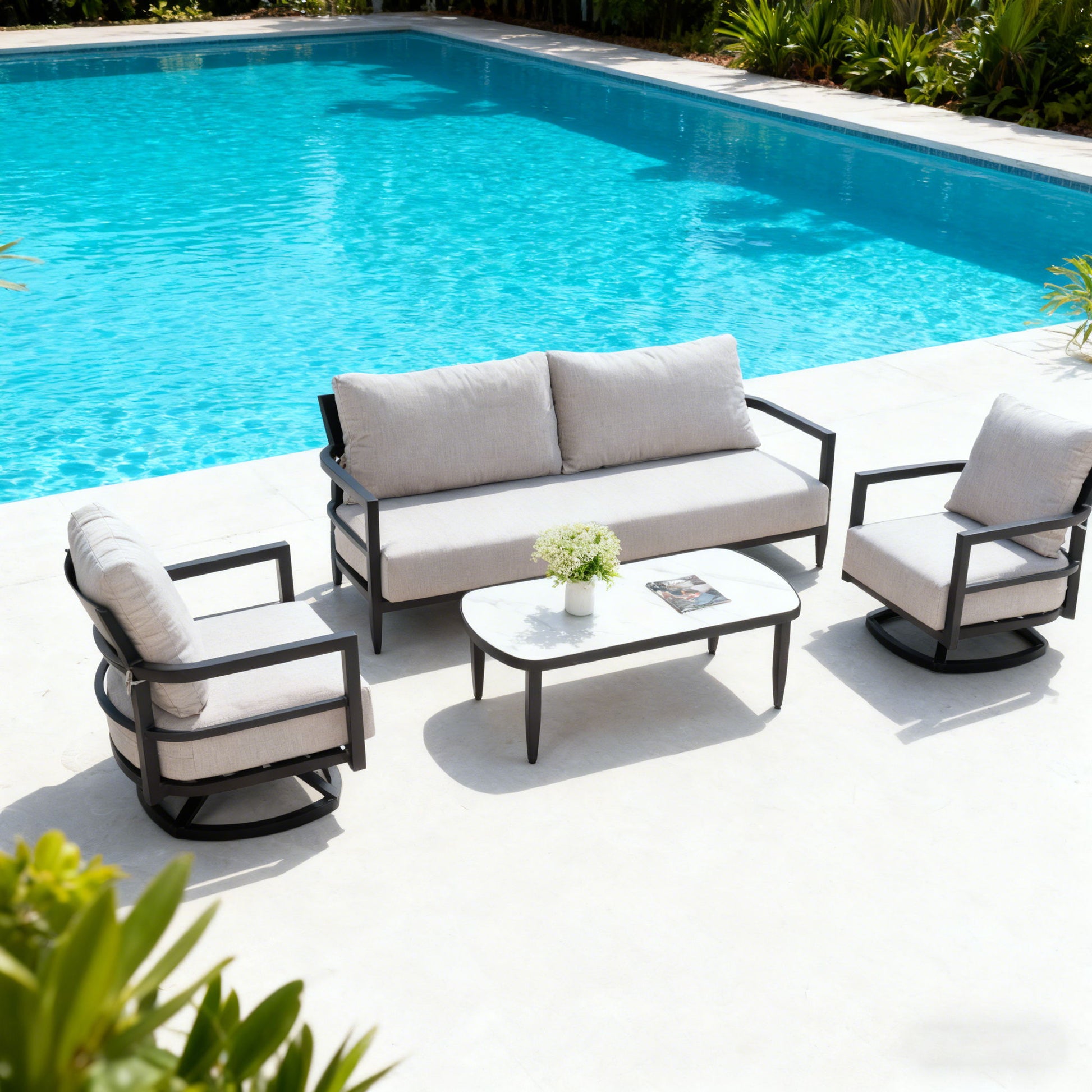 - Rust-Free Aluminum Frame: powder-coated finish resists corrosion and enhances visual contrast with stone tops.