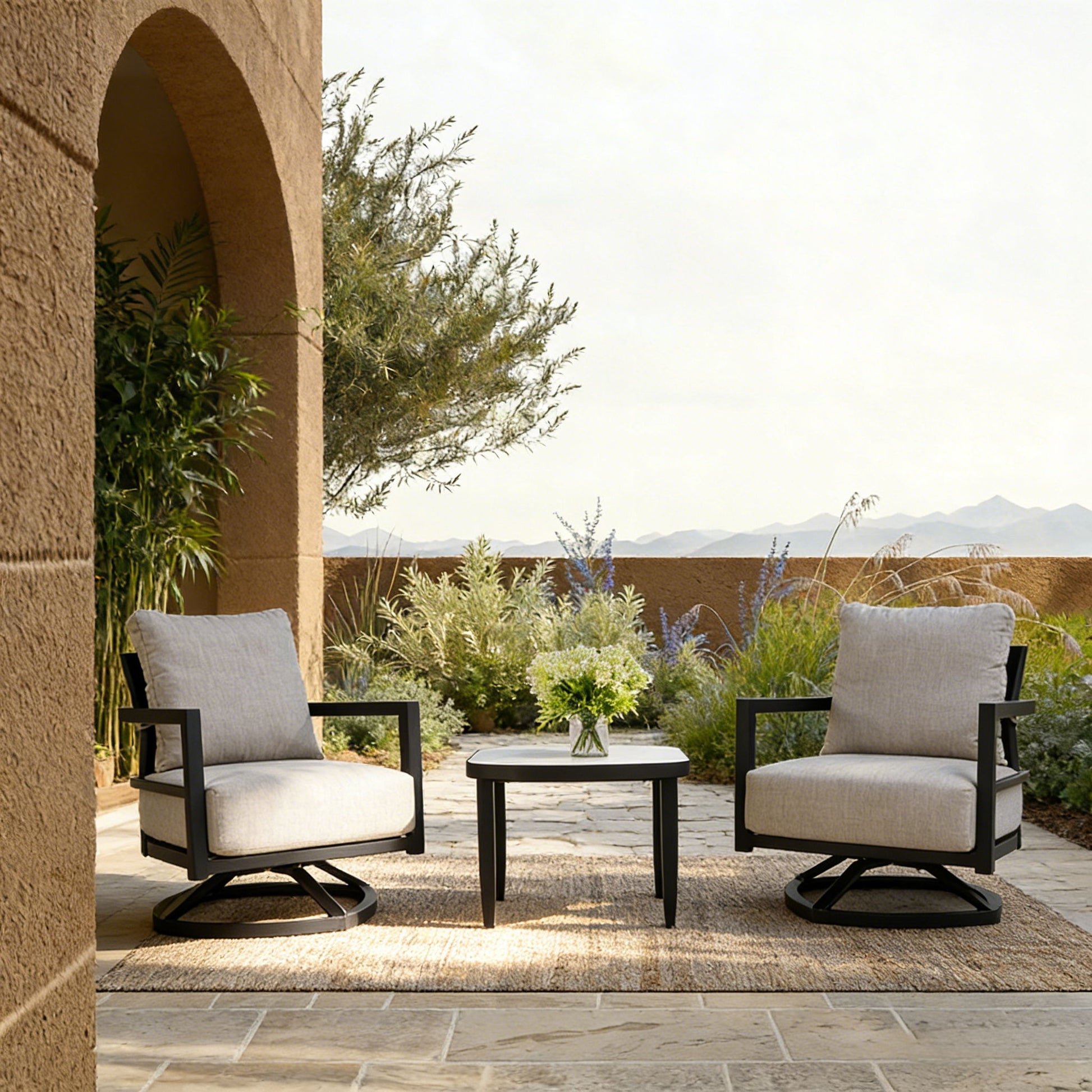 - Sunbrella Fabric Cushions: Fade-resistant, stain-resistant, and breathable cushions with removable zippered covers for convenient care.