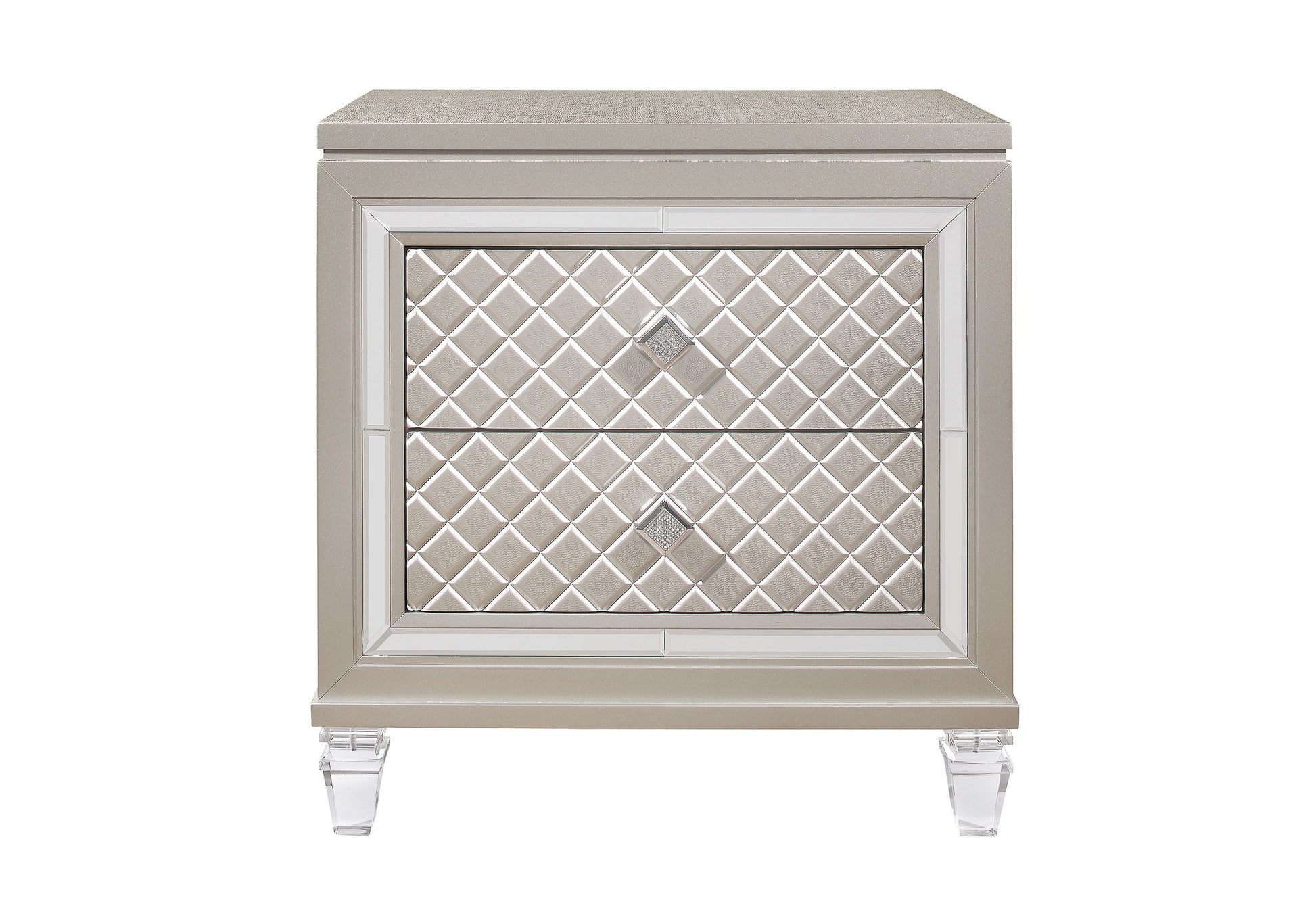 Old Hollywood Glam styling with all of the modern day features that today's consumer has come to expect. From the eye-catching platinum metallic finish, to the fancy acrylic legs and ambient LED lighting, the Paris bedroom collection is a true show stopper.