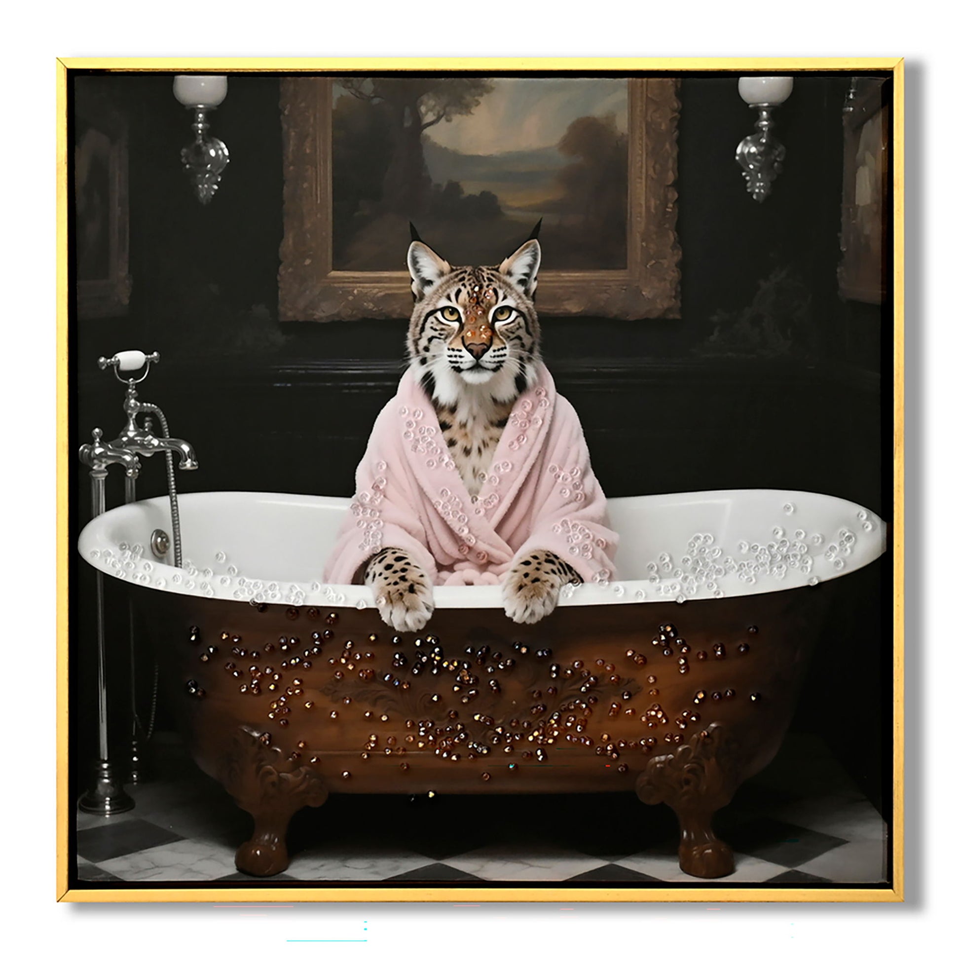 Tiger In Bathtub Wall Art Print Poster, Bathroom Decor Posters Prints For Restroom - Pink / White