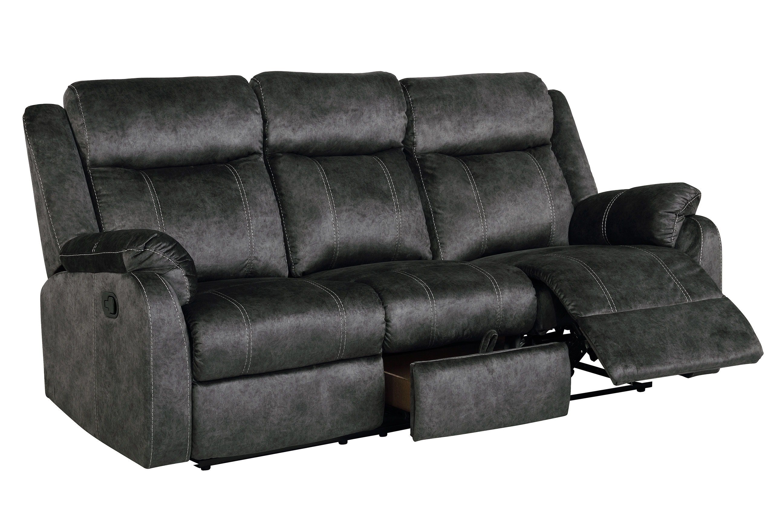 Transform your living room, den, or loft into a stylish and comfortable space with this reclining collection from Global Furniture USA. The traditional styling and versatile design elements make a statement in any room. The stylish fabric makes coordinating room decor easy, while the lift-up consoles with convenient storage and cup holders add practicality. Quality craftsmanship and deeply padded cushioning ensure comfort and durability.