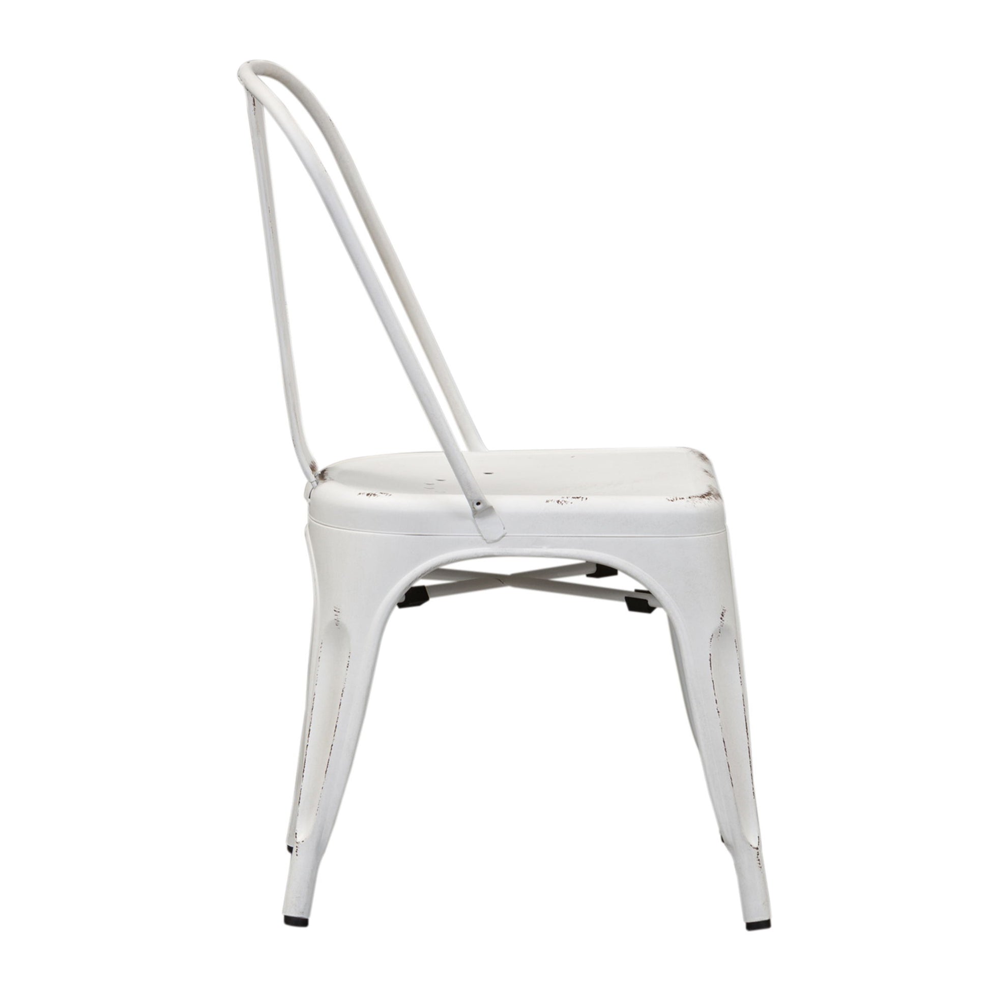 Indulge in classic vintage styling and industrial feel with the Vintage Series bow back side chair. Crafted of metal, this piece features multiple finish options and heavy distressing. Distressed metal finishing accompanied by colors that can mix and match offer a unique designer look.