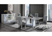 The YLime White Marble Dining Collection, a stunning addition to your dining room from Global Furniture USA. This contemporary set features a luxurious white marble tabletop, providing an elegant, durable surface for memorable meals. The sleek YLime Grey dining chairs boast a comfortable, curved design and high-quality upholstery for stylish seating. With a sturdy base and premium materials, this dining set blends sophistication and durability, creating the perfect centerpiece for entertaining and everyday use.