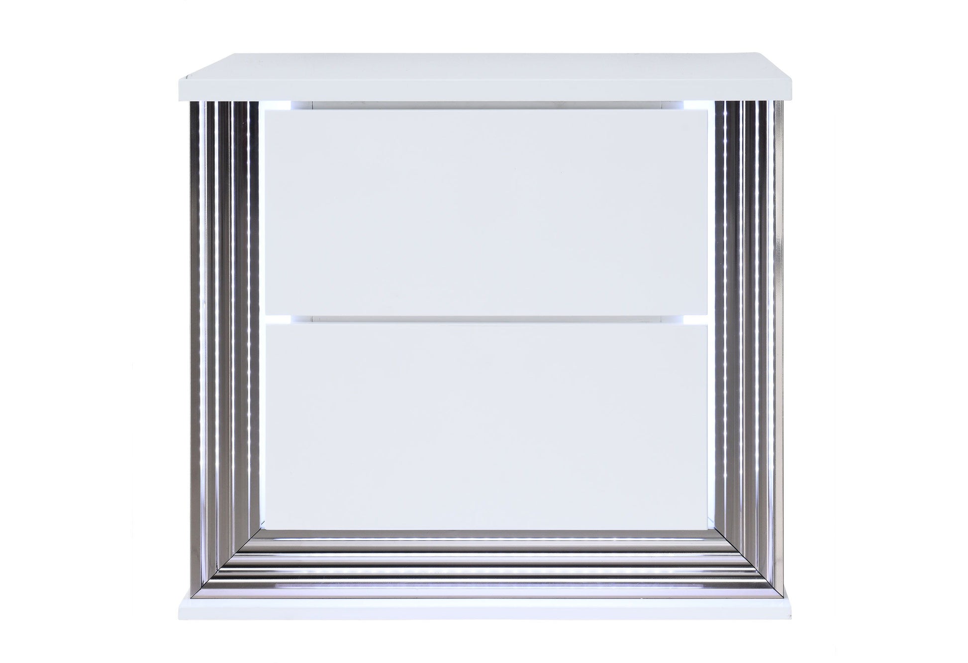 Introducing the Ylime Collection by Global Furniture USA - a stunning addition to any bedroom. Crafted with a sleek, deco modern design, this collection features rich chrome accents on all pieces and LED accent lighting. The real showstopper is the LED accents that add a touch of luxury and sophistication to the overall look. An available large matching vanity with stool makes this one of the most accommodating, complete solutions for your bedroom.
